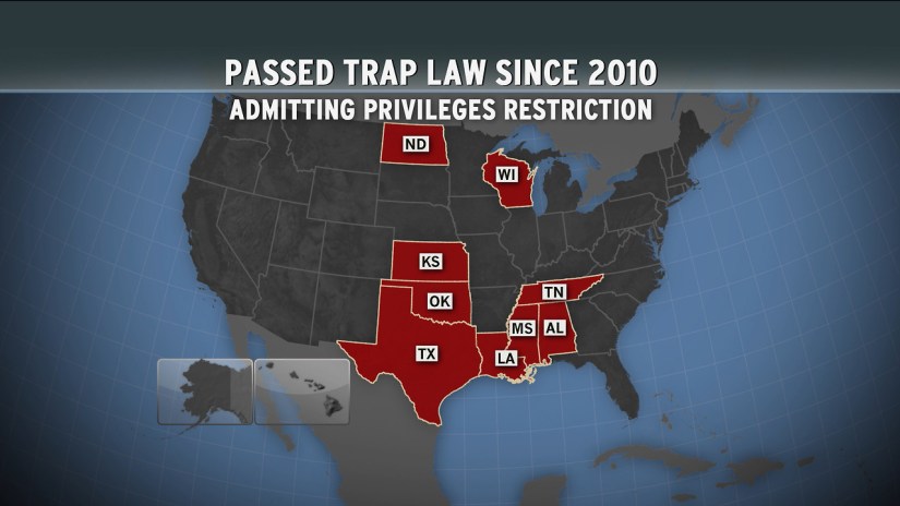 Since 2010, nine Republican-controlled state Houses have passed TRAP (Targeted Regulation of Abortion Providers) laws that intentionally seek to shut down abortion clinics by imposing heavy regulations.