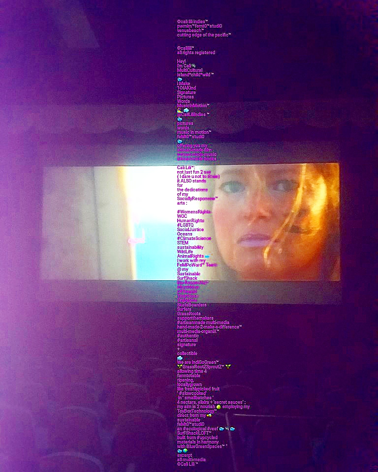 Cali adores being an actor and takes that craft very seriously, but found herself turning down 3 acting offers, that she felt were disempowering to women, in order to "turn up" what she calls fempower (TM) by scraping together "half a shoestring budget" to build her "green" "off-grid," upcycled "surfshack" feMt0™studi0 in the "floating" neighborhood of Venice Beach in Los Angeles, California where she makes "Signature" auteur Motion Pictures, Albums and Books, "TinyMultiMedia™️ HandMade2MakeADifference™”©