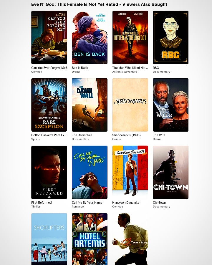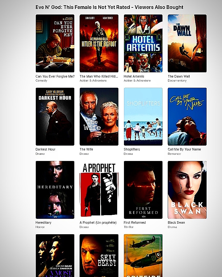 Apple Link : 🍎https://itunes.apple.com/us/movie/eve-n-god-this-female-is-not-yet-rated/id1447735793