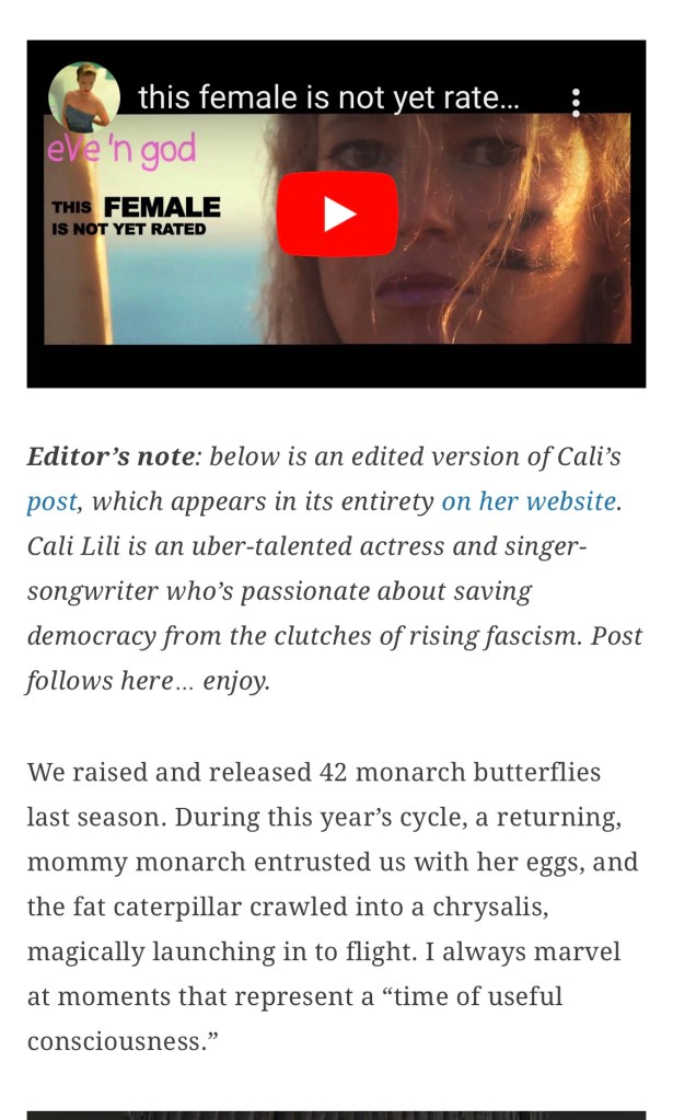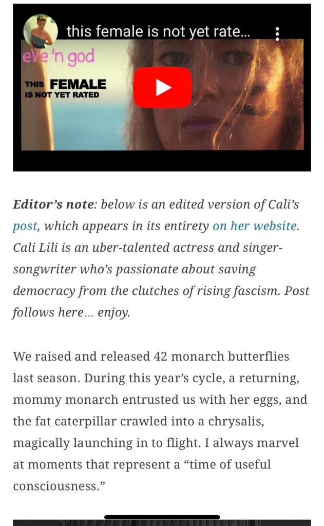 I hope also that my film and album will inspire you to care about the world in a new way … and about yourself. I truly believe you will have FUN if you relax into the experience, bc I intended it to feel like an experience…