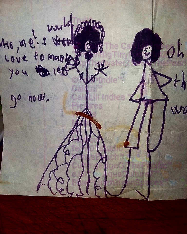 Even as a multicultural kid – I felt a burning need to illustrate fierce inclusion + diversity … the featured couples appear back to back on one piece of paper — they are drawn literally “back to back” … One couple is light-skinned + the other pair are dark-skinned / black