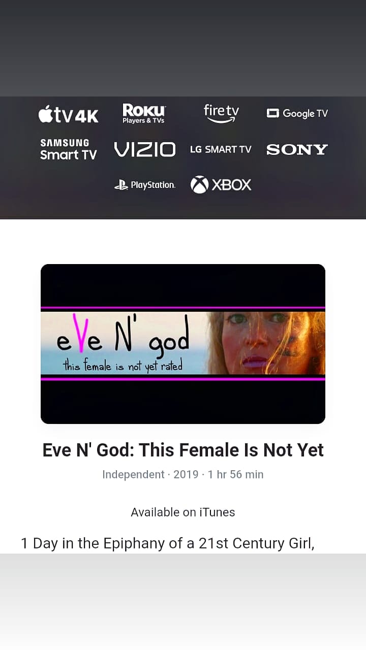 Apple TV 🎬🍎  https://tv.apple.com/us/movie/eve-n-god-this-female-is-not-yet/umc.cmc.2yxdyr5yqcmhr1y1hn195e3sm
