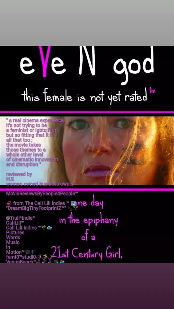 Cali Lili ‘s Oscars 2020 Contender “eVe N’god this female is not yet rated” Now streaming on 🍎🎬Apple TV, iTunes Movies, Google Play Movies, Roku, Vimeo etc … with original soundtrack available on 🍎🎧Apple Music, Youtube, Tidal music, etc …