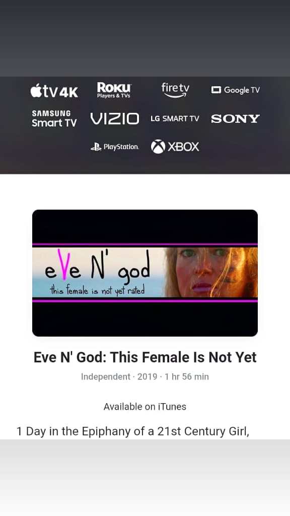 Apple TV 🎬🍎 https://tv.apple.com/us/movie/eve-n-god-this-female-is-not-yet/umc.cmc.2yxdyr5yqcmhr1y1hn195e3sm